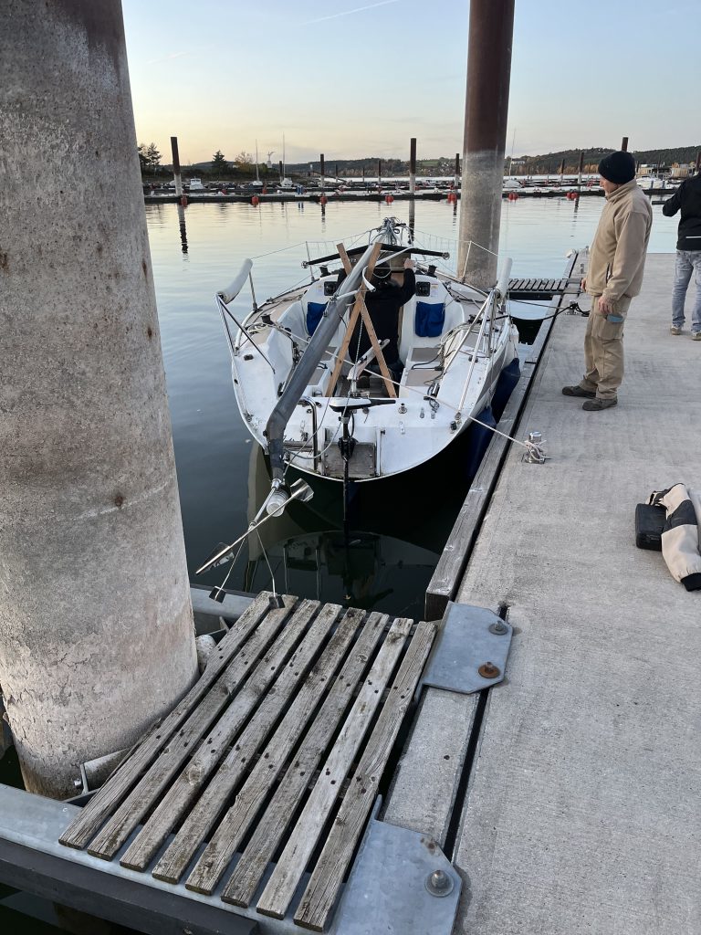 Oktober: Auskranen und verbringen der Alina in`s Winterlager